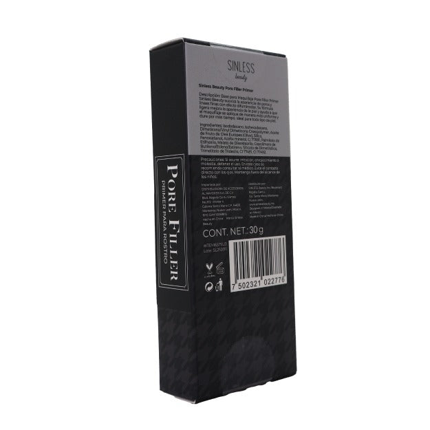 Descripción: Base para Maquillaje Pore Filler Primer Sinless Beauty suaviza la apariencia de poros y lineas finas con efecto difuminador, Su fórmula ligera mejora la apariencia de la piel y ayuda a que el maquillaje se aplique de manera más uniforme y dure por más tiempo. Ideal para todo tipo de piel.