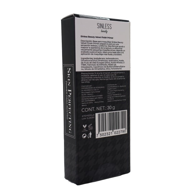 Descripción: Base para maquillaje Sinless Beauty Velvet Finish Primer prepara la piel con una sensación sedosa y uniforme. Esta fórmula ayuda a mejorar la apariencia de la textura y a difuminar visualmente pequeñas imperfecciones, dejando un acabado suave al tacto. Ideal como base para una aplicación de maquillaje más fluida y duradera